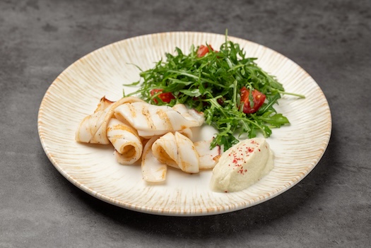 Кальмар на гриле с рукколой