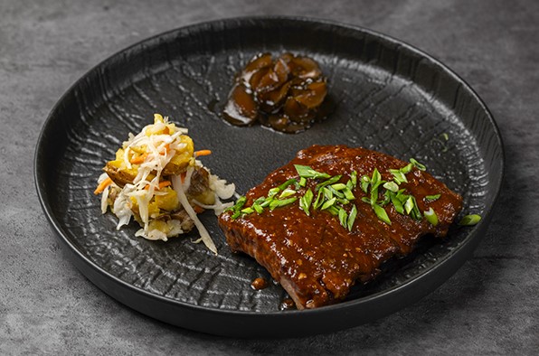 Ребра с медовыми огурцами и картофлем по-деревенски