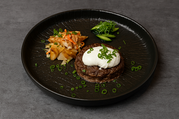 Бифштекс из мраморной говядины с бейби картофелем и яйцом пашот