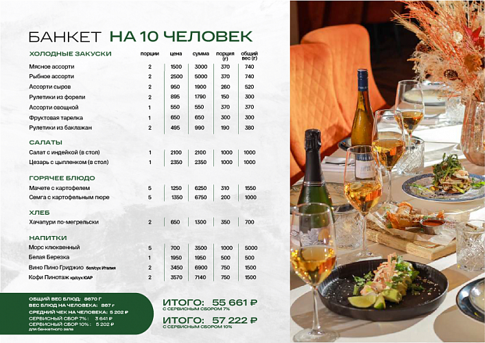 При бронировании даты в нашем ресторане вы получаете доступ к специальным предложениям для организации праздника: