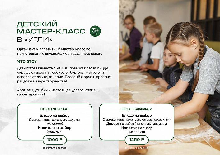 Мясной ресторан, рекомендую заранее бронировать стол., начнем:Стол - деревянный, устойчивый, но размер барного столика, часть блюд просто не помещалась. Закуски, выбор в меню есть, но у нас не вызвал желания заказа. Салаты заслуживают уважения, подача на тарелке с широкими полями, шикарная нарезка, возможно кухня использует керамические ножи для нарезки, манго, авокадо, спаржа и орешки, заправка оливковое масло.Супы, подача в керамических бульонницах, на деревянной доске часть заправки отдельно в металлической чашке, тыквенный густоват, борщ без прекрас, с мелкой шинковкой овощей и мяса размером(нарезка как на бефстроганов), чеснок отмечен - он высокого качества, как и 2 темные корочки, но зелень придала ощущение пластика, будет лучше ее не добавлять в блюдо, а оставить в стороне.Затем подают выпечку - Королевский хачапури, фото в меню и действительность безусловно не соответствуют, земес теста дал сбой, сложилось впечатление, что это хотели сделать хачапури по мегрельски, взяв замороженную заготовку для пиццы, поверх тяп ляп сыром., выпечка точно история не этого ресторана.Стейки Ти-бон прожарка соответствует заказу medium well, отдельно стейк Рибай прожарки ower lock, но с пометкой чтобы можно было прожевать, прожарка соответствовала, к мясу подают достаточно насыщенный специями соус средней остроты и нано салат, в виде нарезанных овощей, с угла блюда крупная морская соль и качественный перец горошком, приборы для мяса - бренд Мираторг, лезвия Portugal. Мясо Огонь! Овощи гриль Огнище!Десерты - кондитеру шоколадную корону и бисквитный трон! Утонченная подача с жидкой карамелью(уваренные сливки) гость самостоятельно выбирает как растопится шоколадная полусфера, презентуя начинку десерта! Шикардос одним словом!Напитки, выбор есть, вина, шипучие напитки, но чай, Чай Карл, на переферии чай уровнем выше, сложилось впечатление что это пересушенное сено, которое случайно ветром задуло в бар и оно попало в френч пресс, в котором собственно чай и был подан.Первый отзыв с ценой, Холодный цех, Кондитер и Гриль оправданы в остальном могу сказать, что ресторан Угли спокойно за вечер накроет стол размером с бюджет небольшого города!