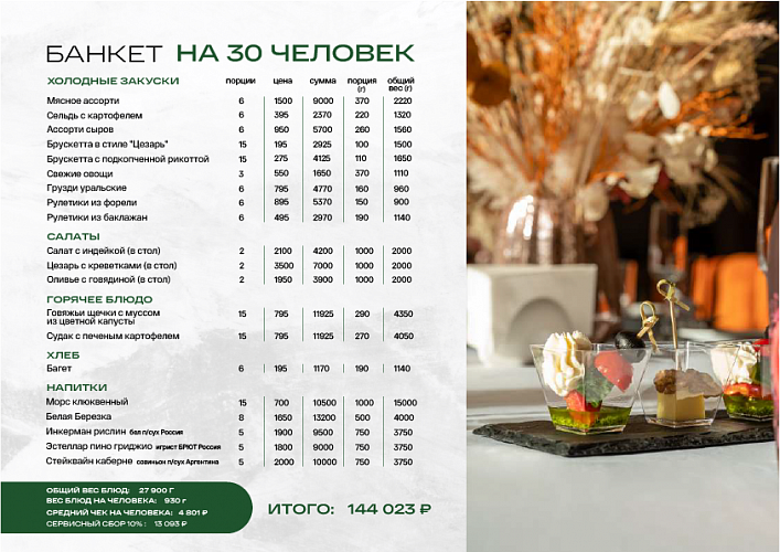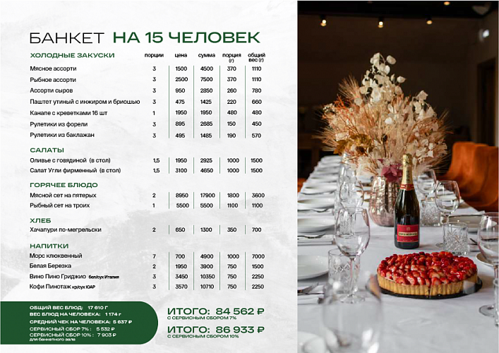 При бронировании даты в нашем ресторане вы получаете доступ к специальным предложениям для организации праздника: