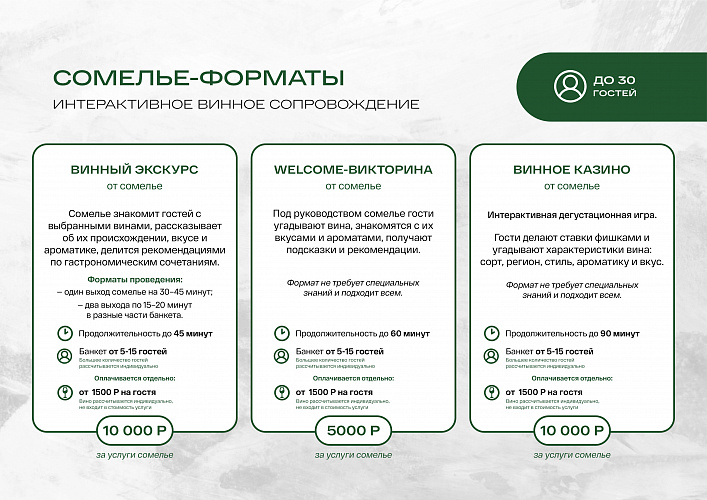 - Отдельные банкетные залы на 10, 15, 30 и 40 человек